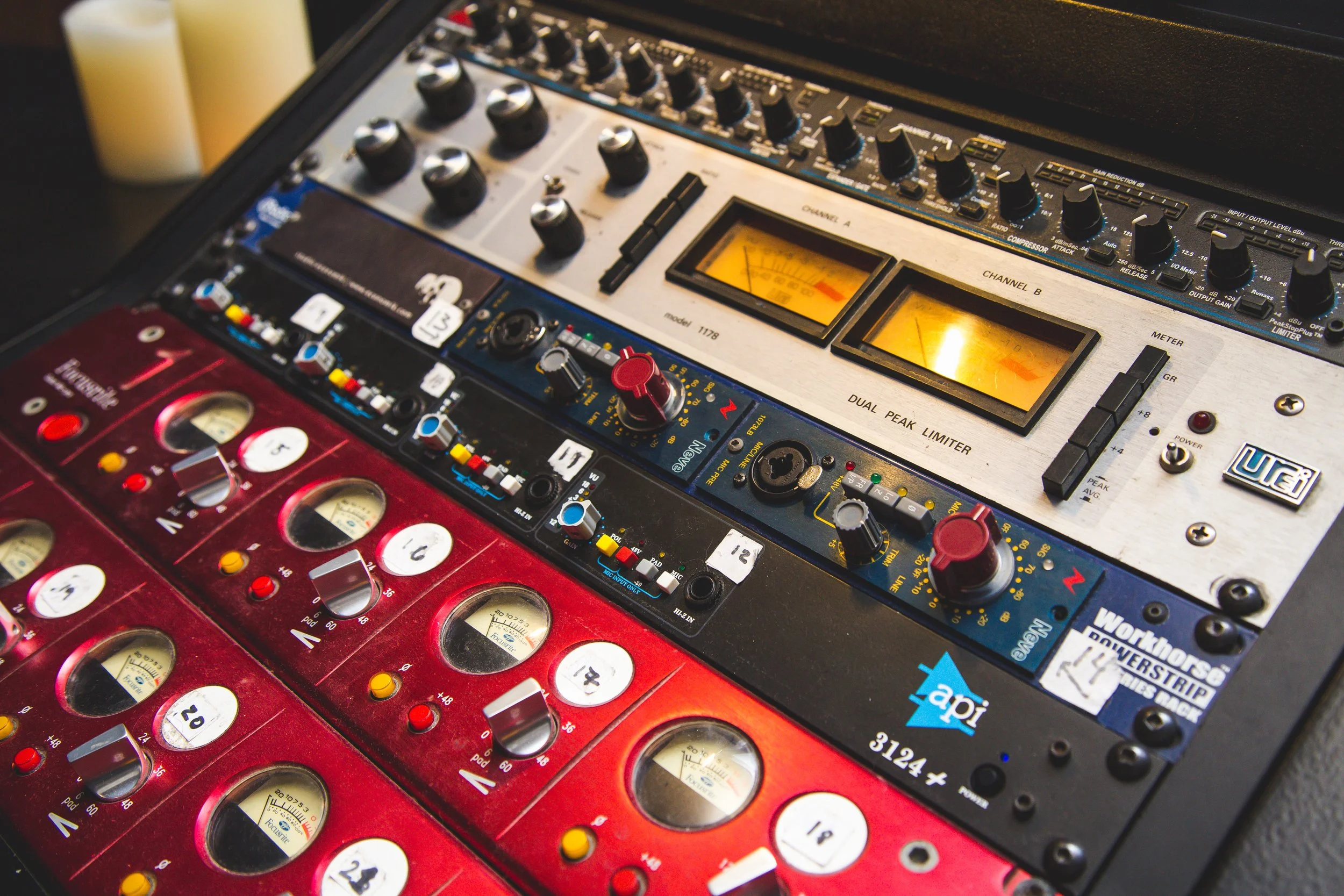 Built from scratch, our live room features exceptional acoustics with custom-designed swinging baffles that provide additional control over sound leakage between microphones and instruments.